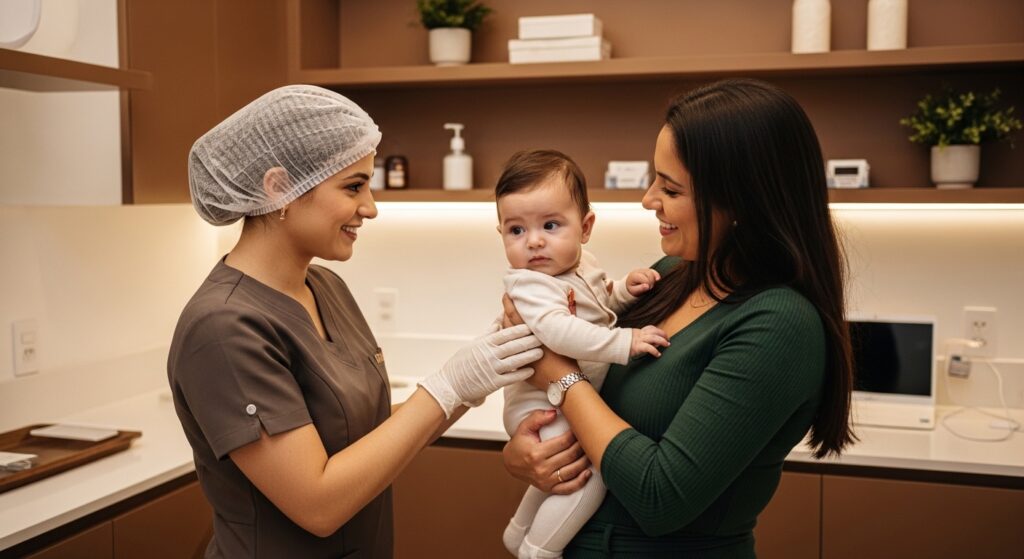 Vacinação, aplicação de medicamentos, teste do pézinho, entre outros…